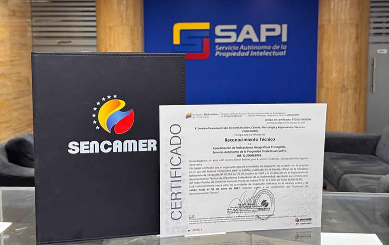 El Servicio Desconcentrado de Normalización, Calidad, Metrología y Reglamentos Técnicos (Sencamer), adscrito al Ministerio del Poder Popular de Comercio Nacional, otorgó un certificado de reconocimiento técnico al Servicio Autónomo de la Propiedad Intelectual (SAPI), por la concesión de Indicaciones Geográficas Protegidas (IGP), signo distintivo que destaca la importancia de las buenas prácticas de producción ancestral en Venezuela.