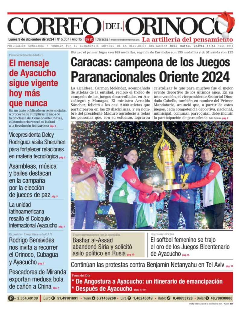 Edición Impresa Correo del Orinoco N° 5.007 9 de diciembre de 2024 by MARIA JOSE ARIAS FERNANDEZ Edición Impresa Edición Impresa Correo del Orinoco N° 5.007 Lunes 9 de diciembre de 2024