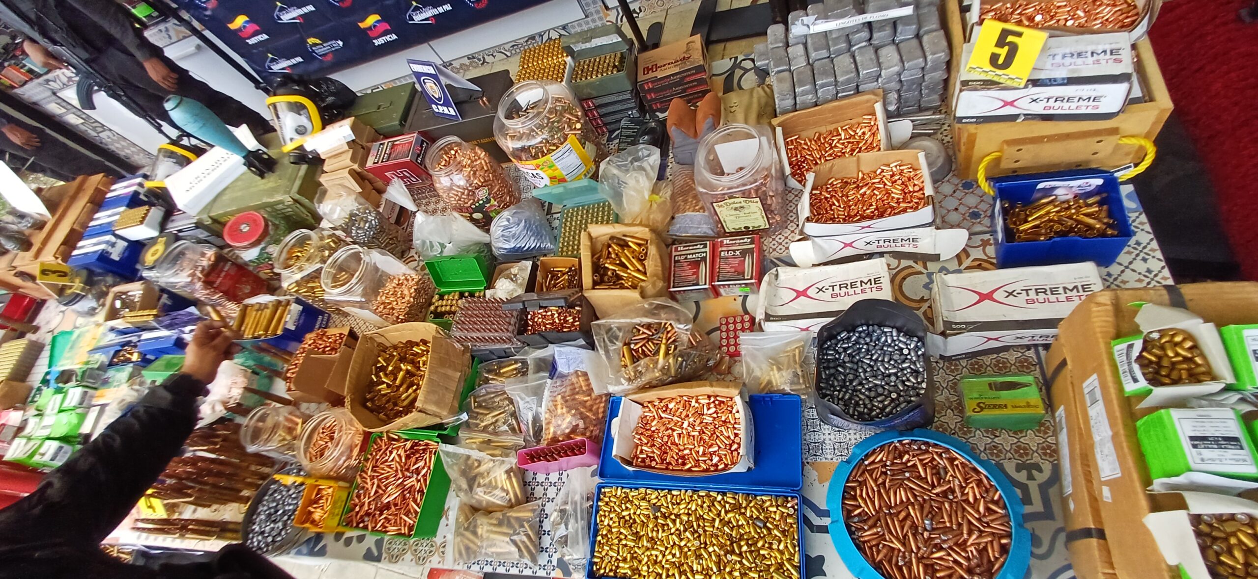 A través de un material audiovisual, mostró las caletas que estaban llenas de armamentos, en una habitación detrás de una cama, otras detrás de un armario, entre otros puntos de la residencia en cuestión. «Cuando utilizan esto y lo hacen de esta manera, premeditadamente, la mala intención no solo se supone que existe, no hay ningún atleta, aquí, no hay competencia de tiro, armas con .50, 338 o 22 (calibres) de la munición encontrada».