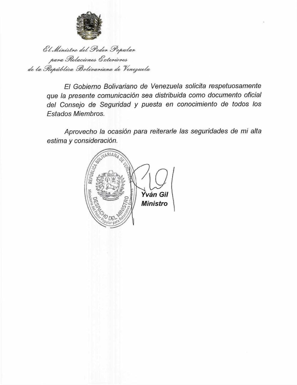 A través de una carta dirigida a Samuel Žbogar, presidente del Consejo de Seguridad y representante permanente de Eslovenia, el ministro de Exteriores, Yván Gil, detalló la agresión ocurrida el 10 de diciembre de 2025.