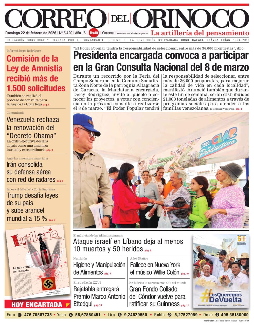 Presidenta Encargada Delcy Rodríguez convoca al pueblo a participar en la Gran Consulta Nacional del 8 de marzo