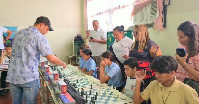 Durante la actividad, los estudiantes participaron en una partida simultánea de ajedrez, donde pudieron demostrar sus habilidades y apreciar el impacto positivo del programa en su formación.