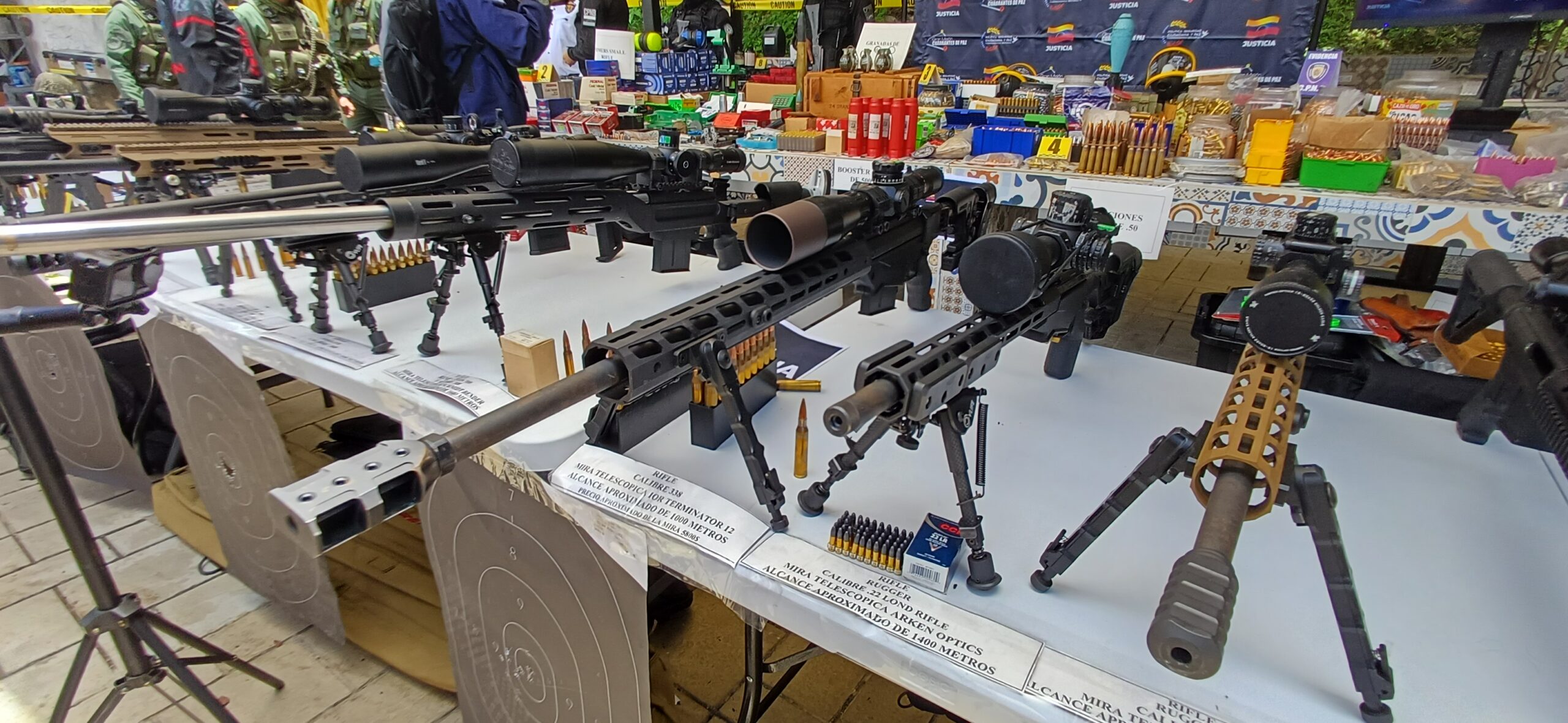 En ese sentido, indicó que este arsenal comprende 23 armas de francotiradores como fusiles .50, supresor de calibres 308, granadas manuales, entre otras armas. «Estos son los planes de la derecha fascista, ¿contra quiénes iba», iban a repetir el escenario del 11 de abril, con francotiradores, ellos colocaron francotiradores, y acusaron al Gobierno nacional de lo que pasó».